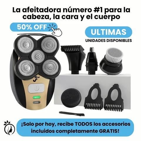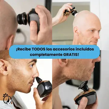 Incluye: Recortadora de precisión, cortador de nariz y oreja, cepillo exfoliante, masajeador facial, afeitadora principal.
